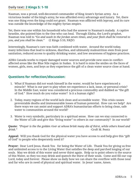 Interestingly, Naaman’s cure was faith combined with water. Around the world today,